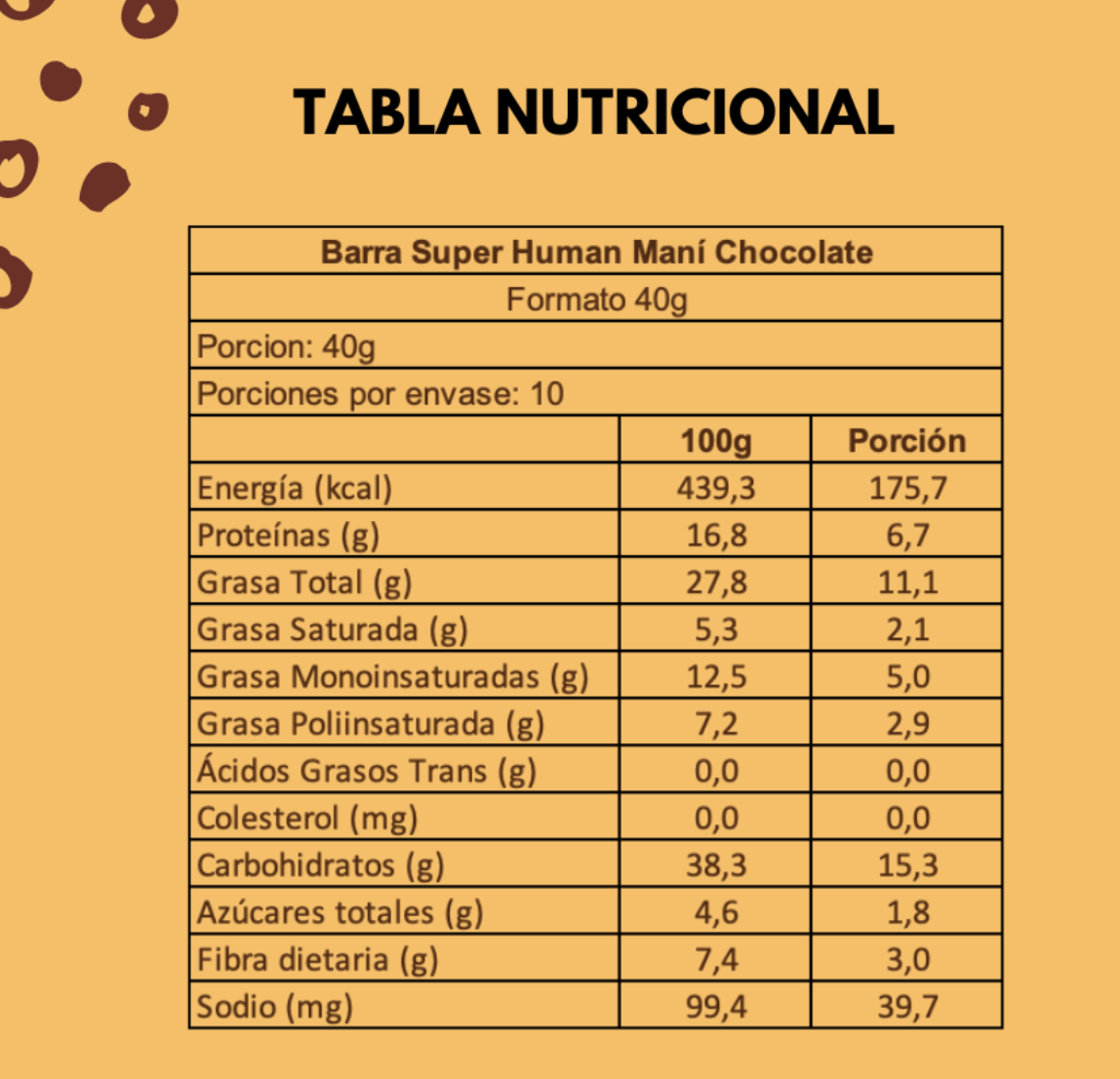 Barra de granola con superalimentos, chocolate belga, mantequilla de maní y proteína de huevo. Una combinación perfecta de sabores, texturas y nutrientes para comenzar, seguir y terminar el día. Las barras Super Human están hechas con ingredientes 100% naturales, para poder sentirte saciado y con energía.